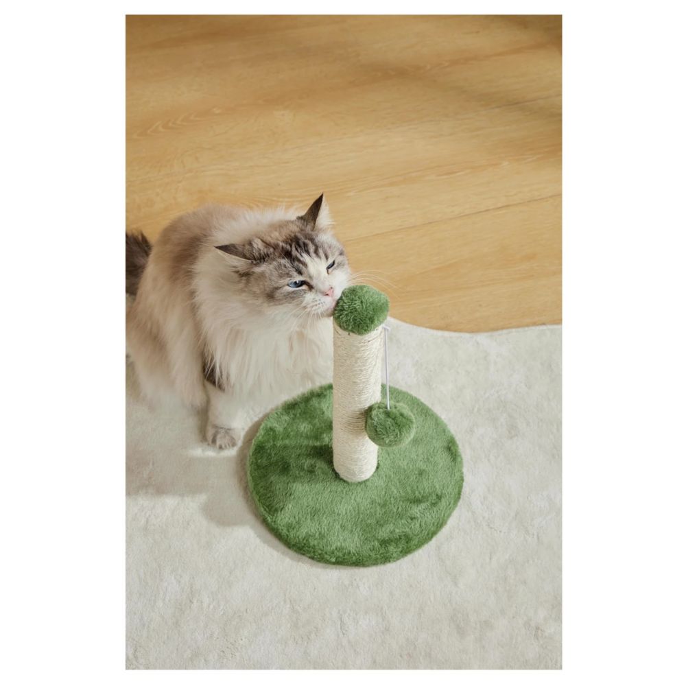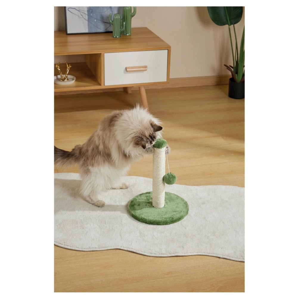 Ο στύλος είναι καλυμμένος με σίζαλ για να καλύψει τις φυσικές ανάγκες γρατσουνίσματος της γάτας σας βέβαια και ένα πολύχρωμο κρεμαστό παιχνίδι με μπάλα για τη γάτα σας.